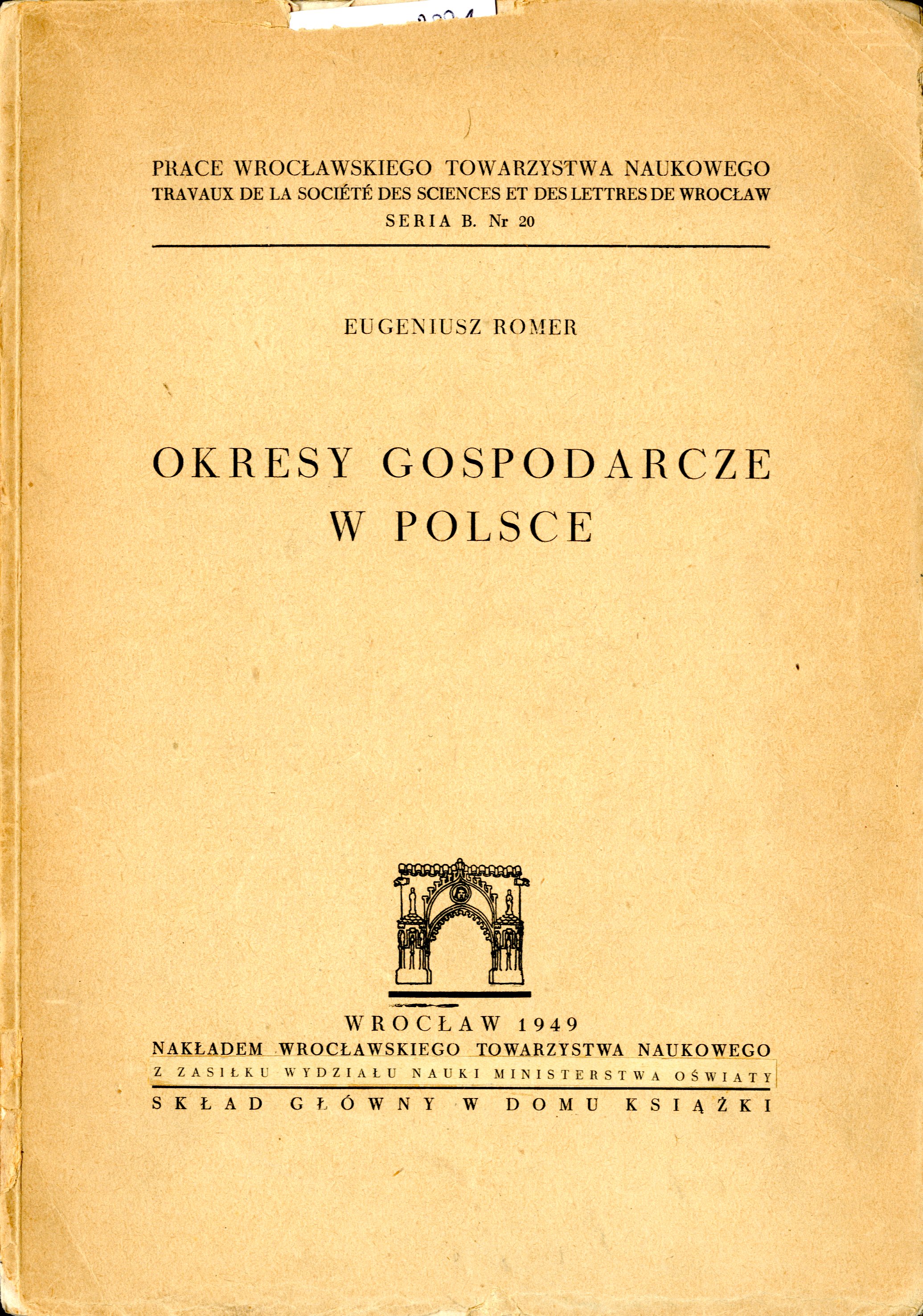 Okresy gospodarcze w Polsce / Eugeniusz Romer. - Wrocław : Wrocławskie Towarzystwo Naukowe, 1949. - 131 stron : ilustracje ; 24 cm.