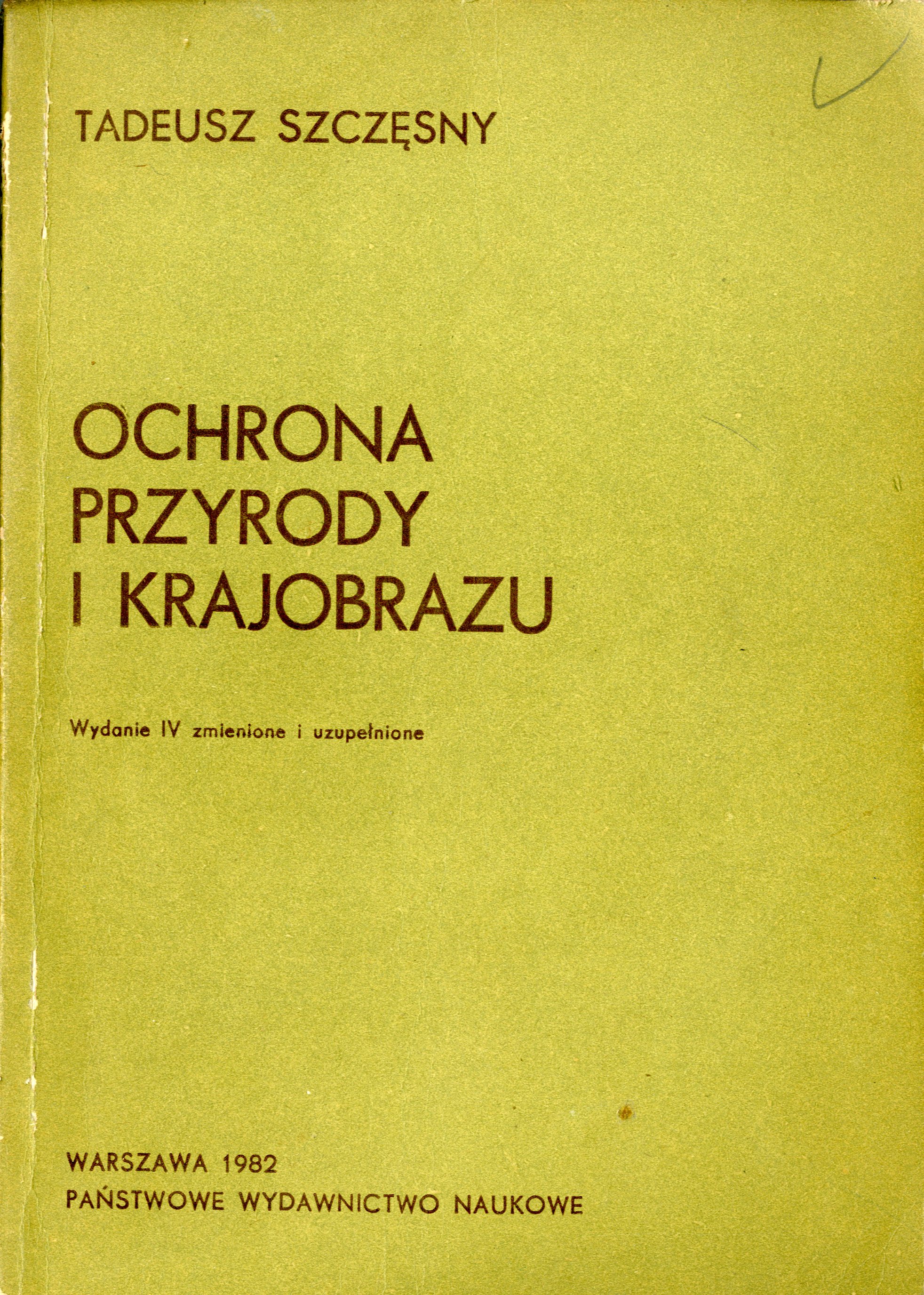 Ochrona przyrody i krajobrazu / Tadeusz Szczęsny. - Wydanie IV zmienione i uzupełnione. - Warszawa : Państwowe Wydawnictwo Naukowe, 1982. - 199, [1] strona : ilustracje ; 24 cm.